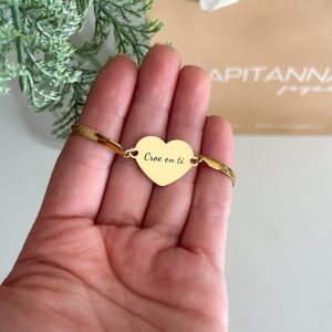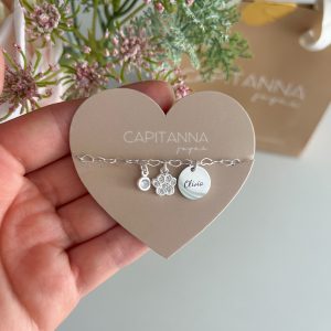 Las pulseras personalizadas de Capitanna están diseñadas para llevar contigo un mensaje especial todos los días. Cada pulsera puede grabarse con nombres, fechas, iniciales o frases significativas, creando una joya única llena de significado.