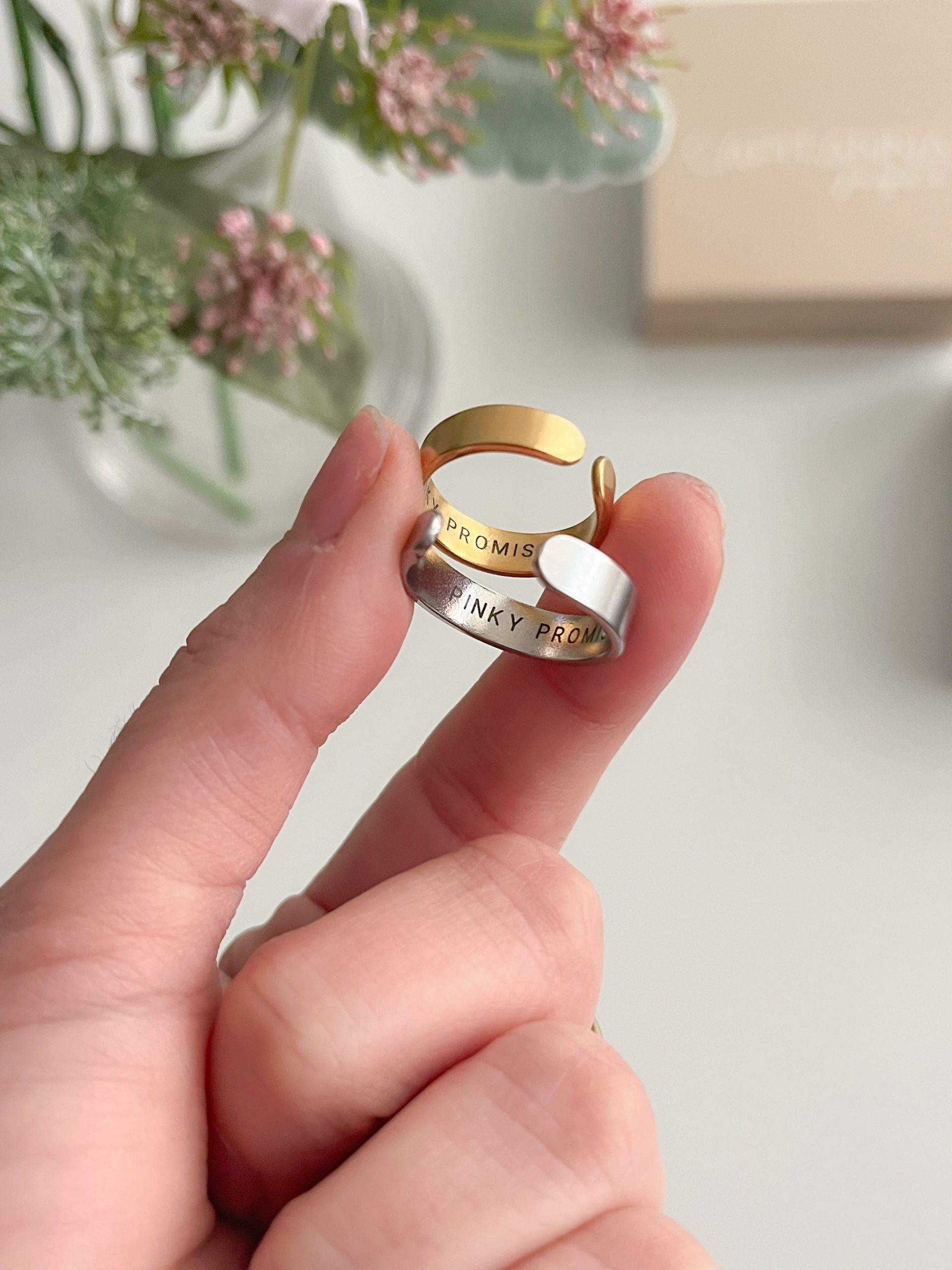 Anillo Personalizado. Crea recuerdos eternos con piezas que reflejan tu estilo y personalidad. Anillos y pulseras grabadas, que se vuelven una pieza con sentido y valor emocional, cada joya cuenta tu historia de una manera única. Encuentra la joya perfecta que celebra tus momentos más preciados con elegancia y distinción.